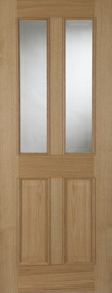 Every door needs a glazed alternative. This two panel/two light design uses raised and fielded panels with raised beading to match that of the 4 panel design.